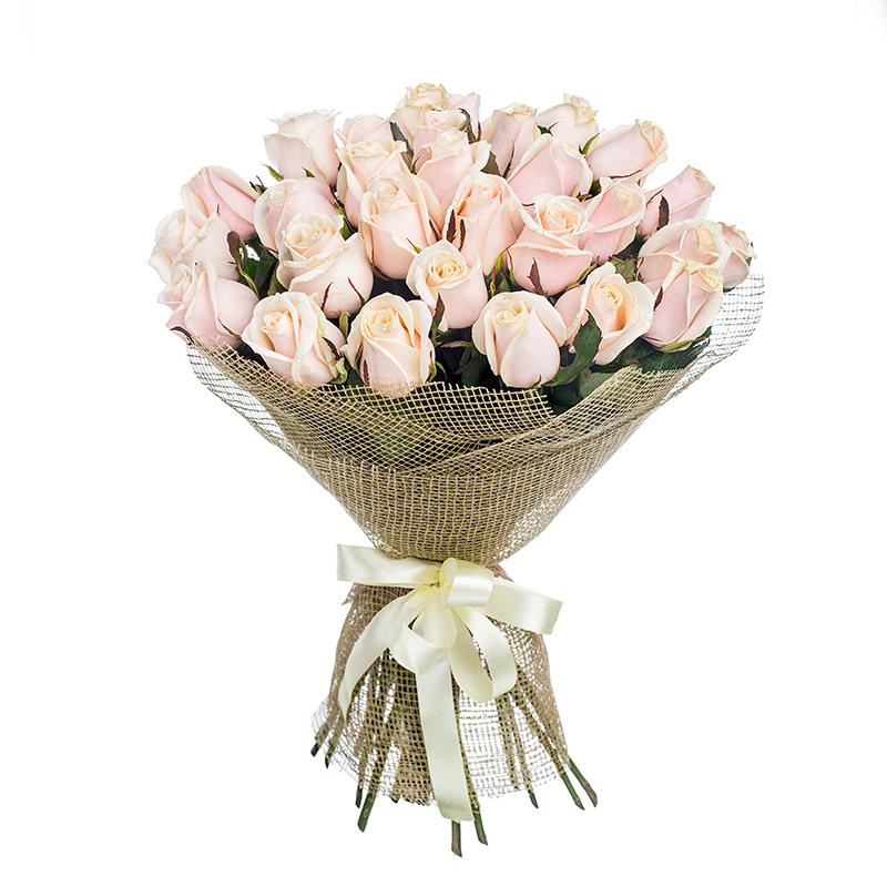 En løst bundet buket i lyserøde og lilla pastelfarver. En sød blomsterhilsen til en du holder af!